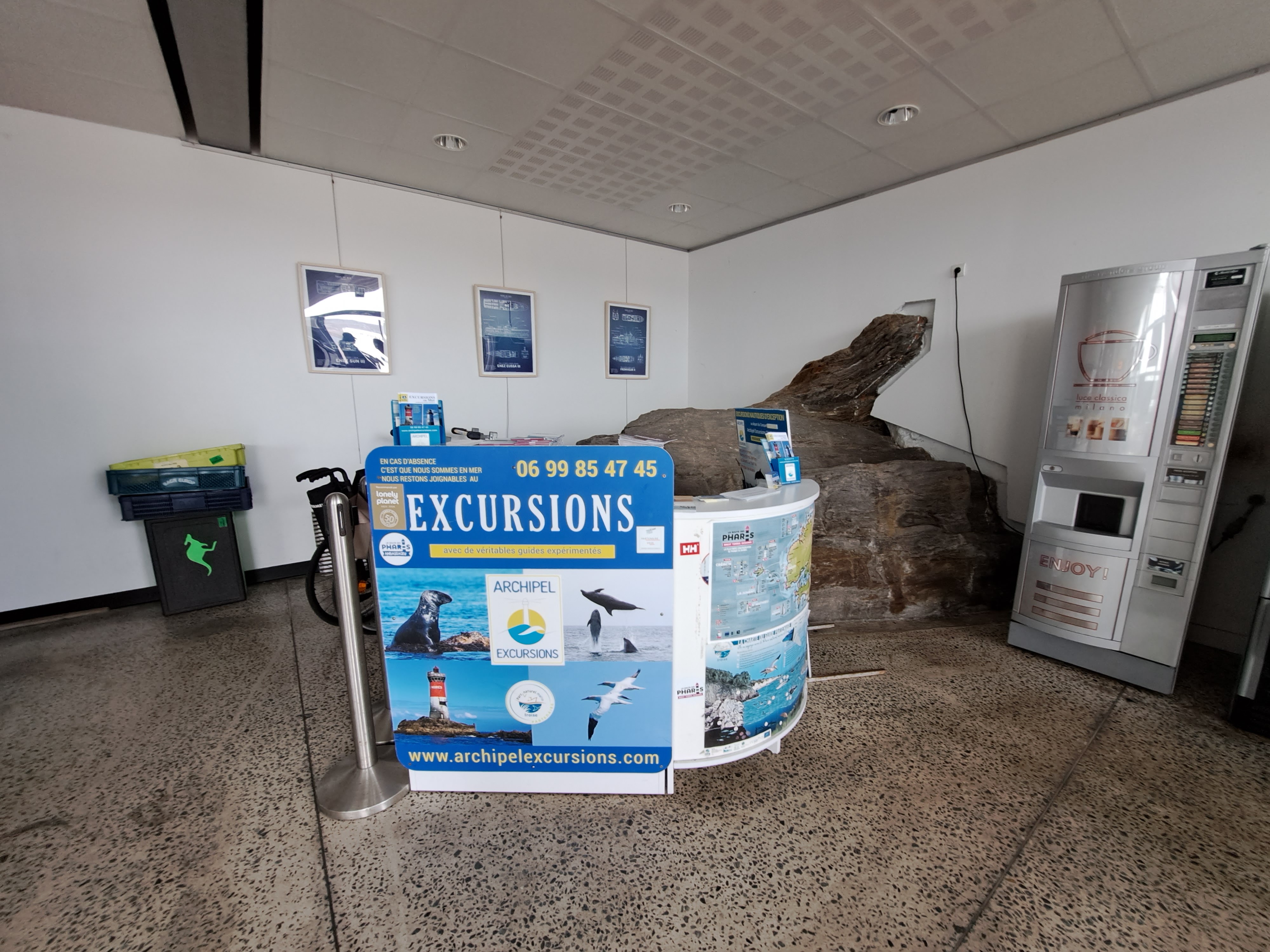 Une seule photo malheureusement (le guichet à la gare maritime) une excursion en Bretagne ça reste une épreuve rapport à la météo capricieuse. Mon petit séjour au Conquet est trop courte, le phare d'Ar Men sera encore plus beau en 2024. Merci pour l'accueil téléphonique et les informations, je reviendrais rendez vous en 2024. Je recommande fortement bien entendu cette société d'excursions !!