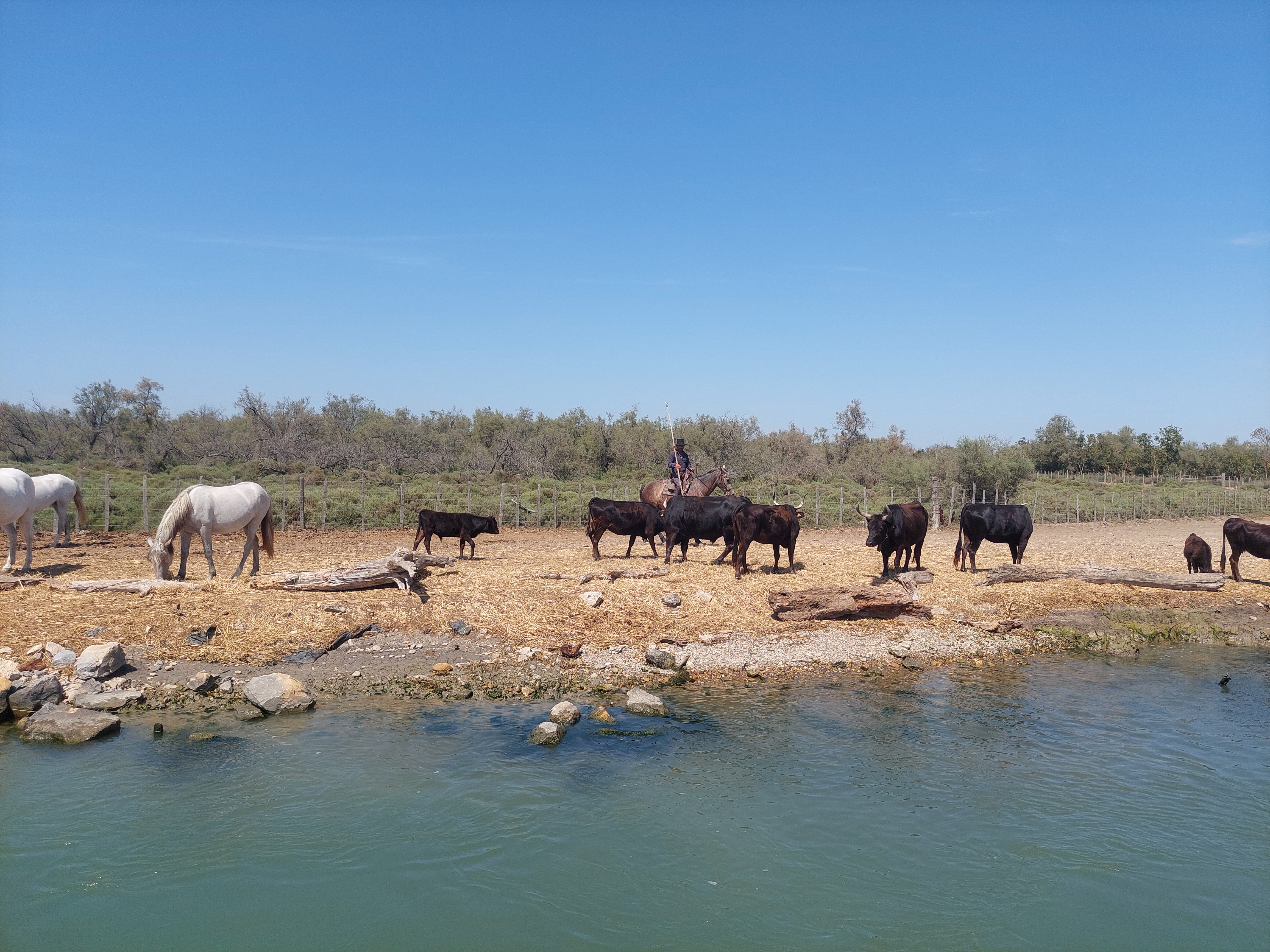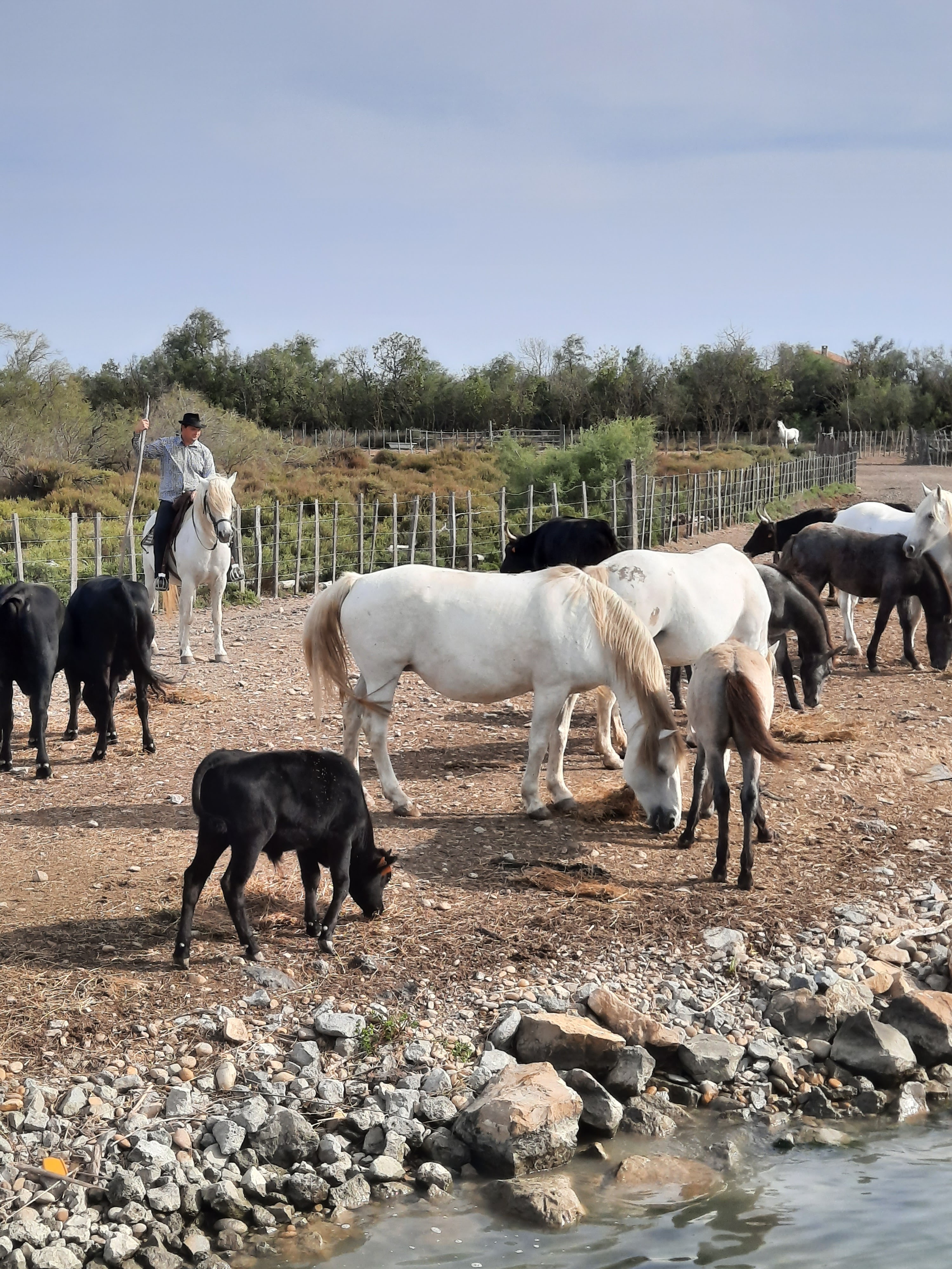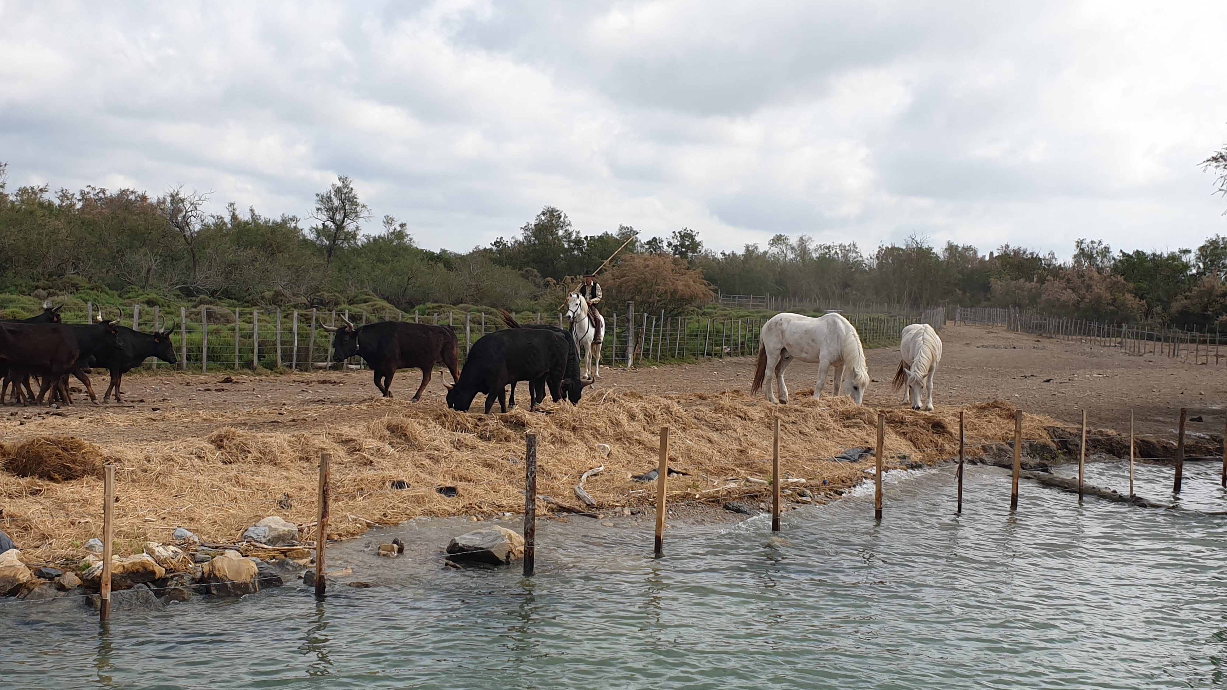 Superbe balade sur l eau, le gardian et ses chevaux qui s approchent de notre bateau.