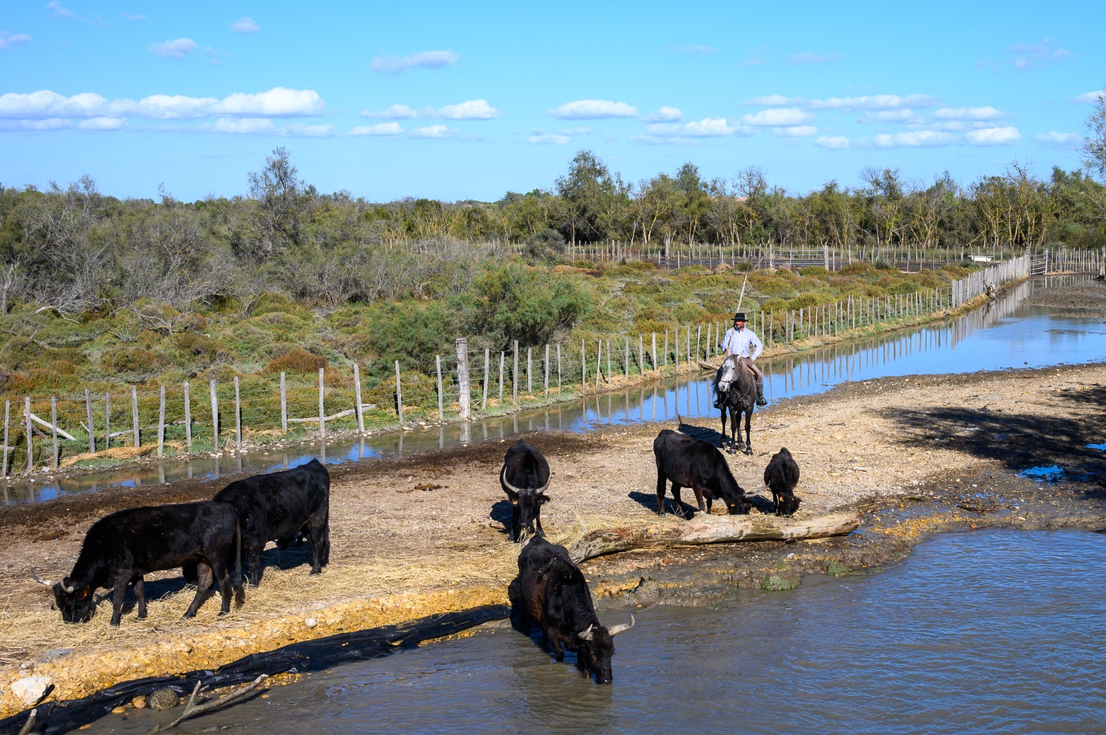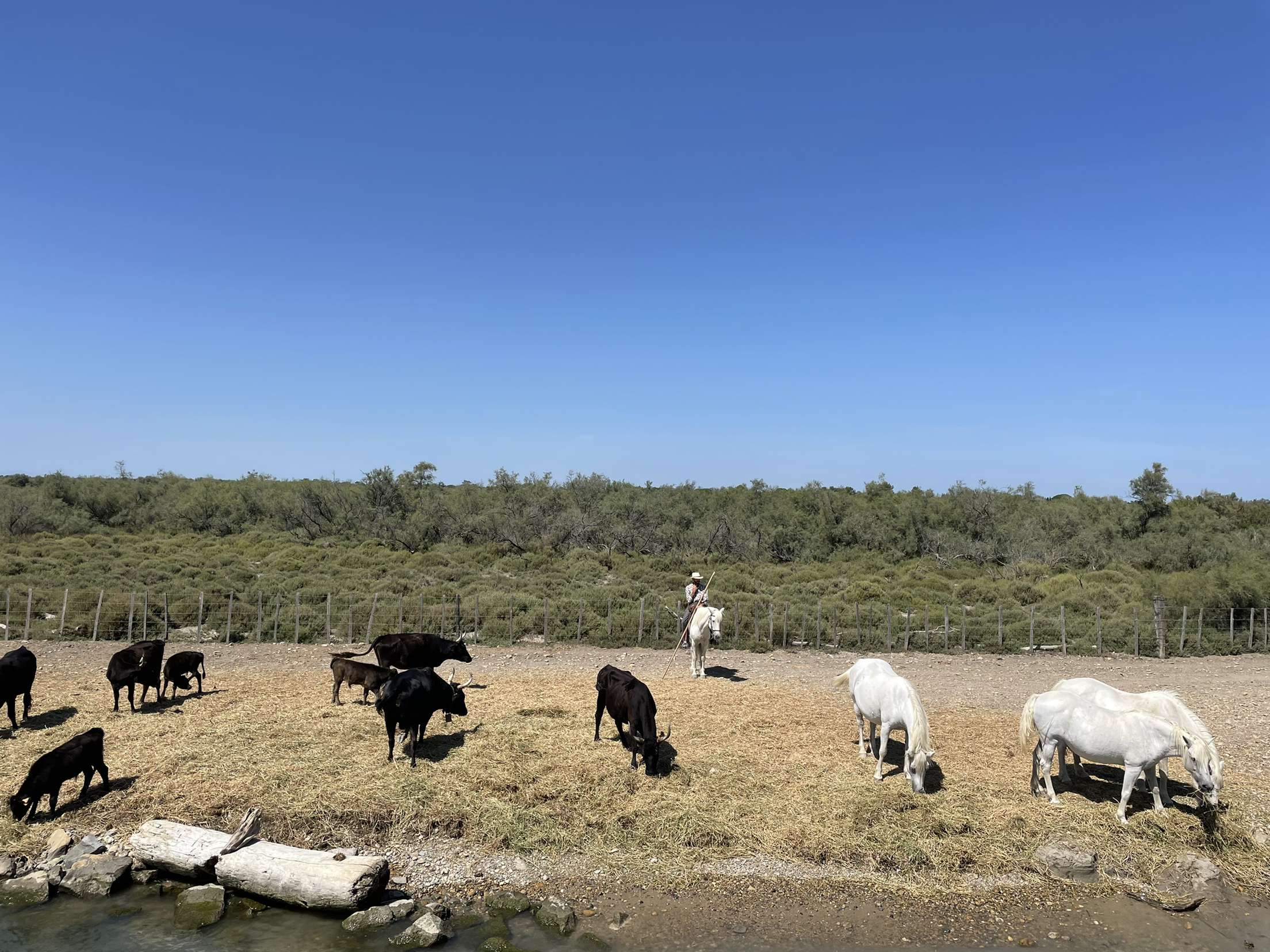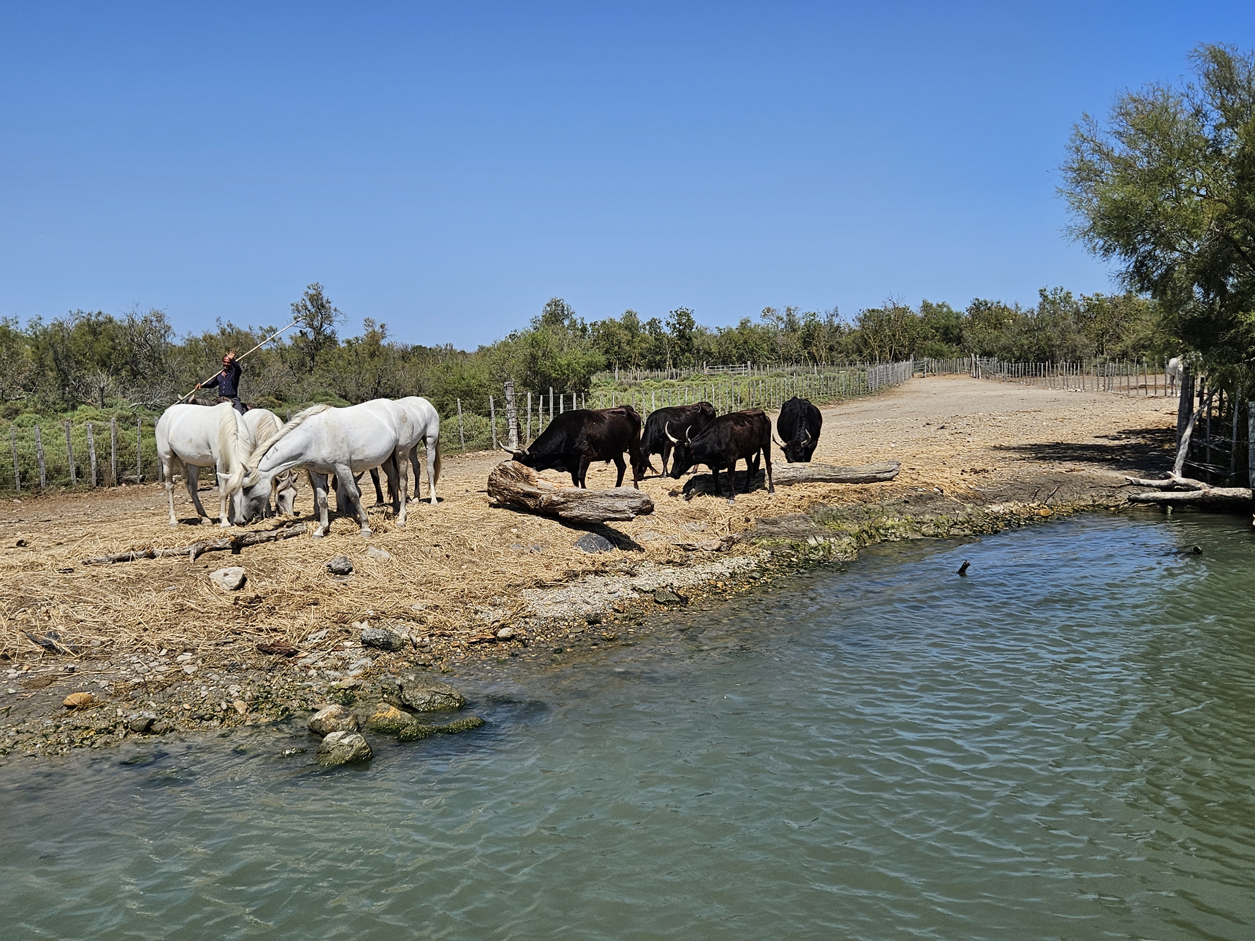 Superbe balade sur l eau, le gardian et ses chevaux qui s approchent de notre bateau.
