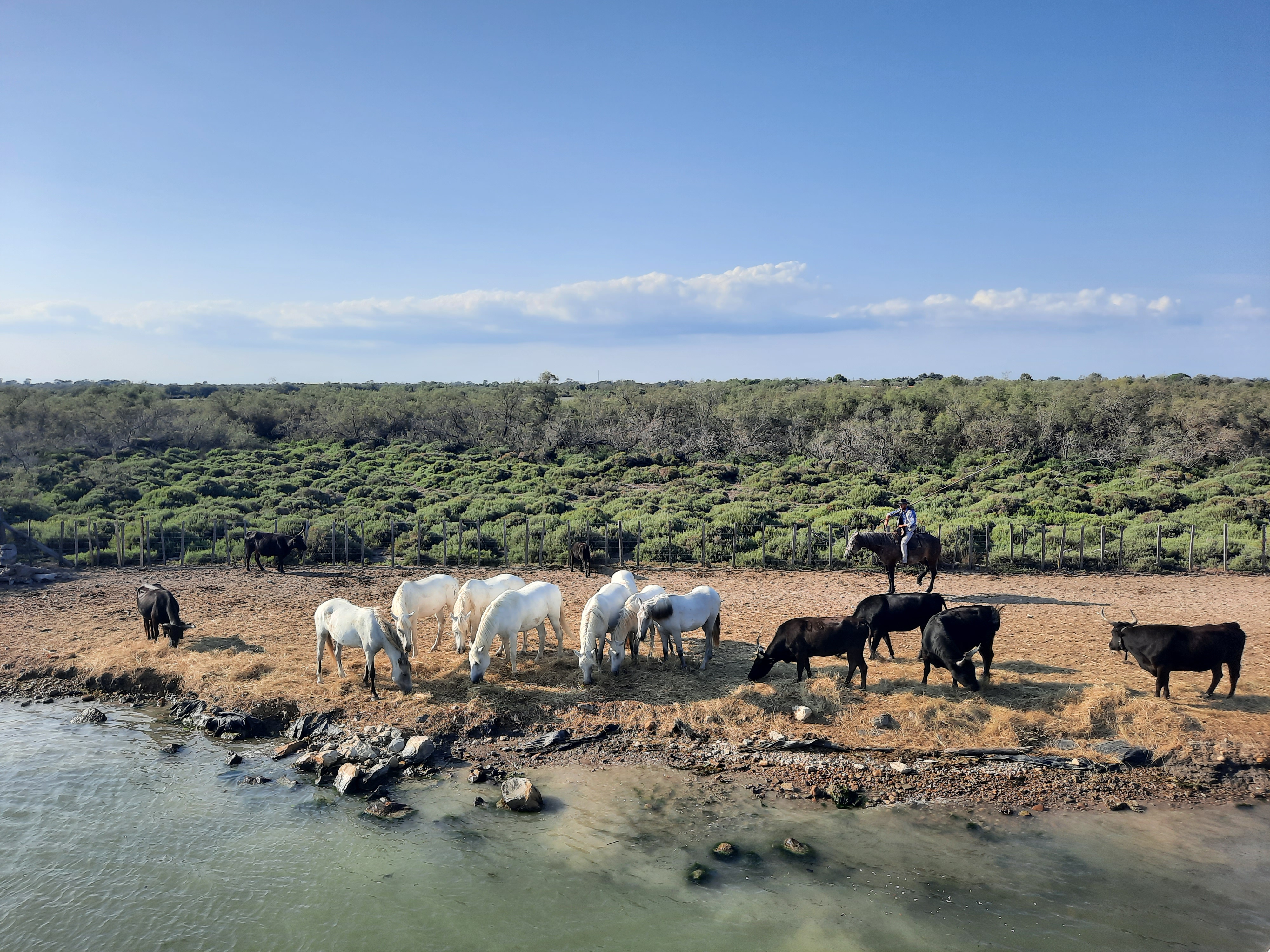 Une superbe ballade entre la mer et le petit Rhône. Et le plus c est le gardian qui ramène au bord du rivage les taureaux et chevaux, de magnifiques photos