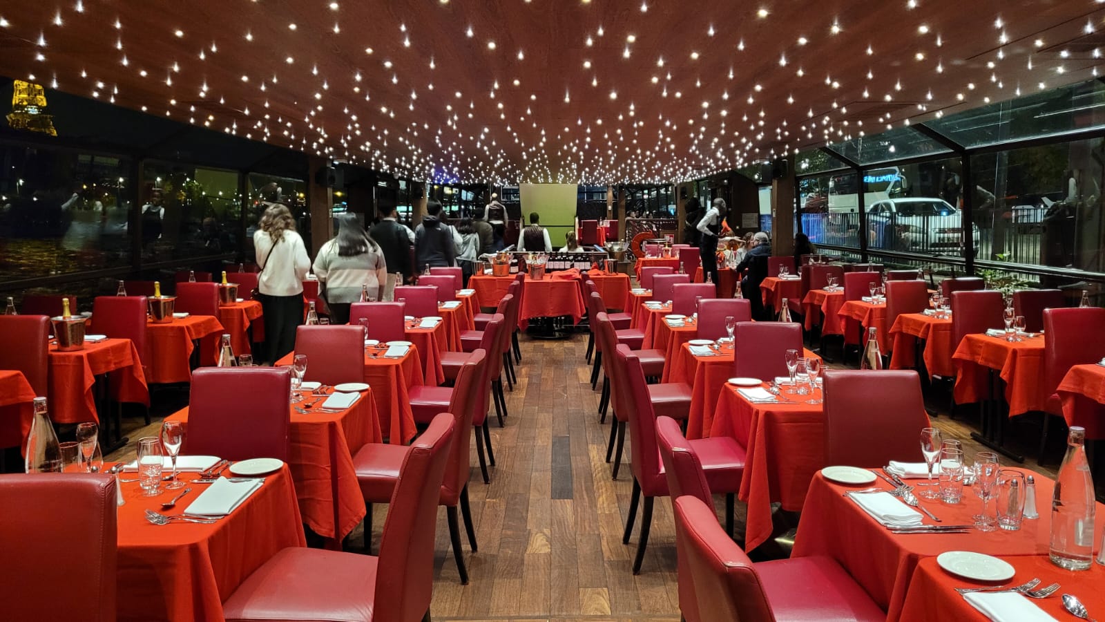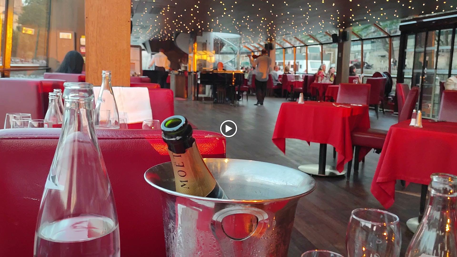 Superbe expérience, la bateau est magnifique, à l'intérieur c'est très spacieux, et le bateau dispose d'un rooftop accessible qui permet d'admirer les plus beaux monuments pendant la croisière. A l'intérieur l'ambiance est romantique, un pianiste et une violoniste on joué pendant le dîner.