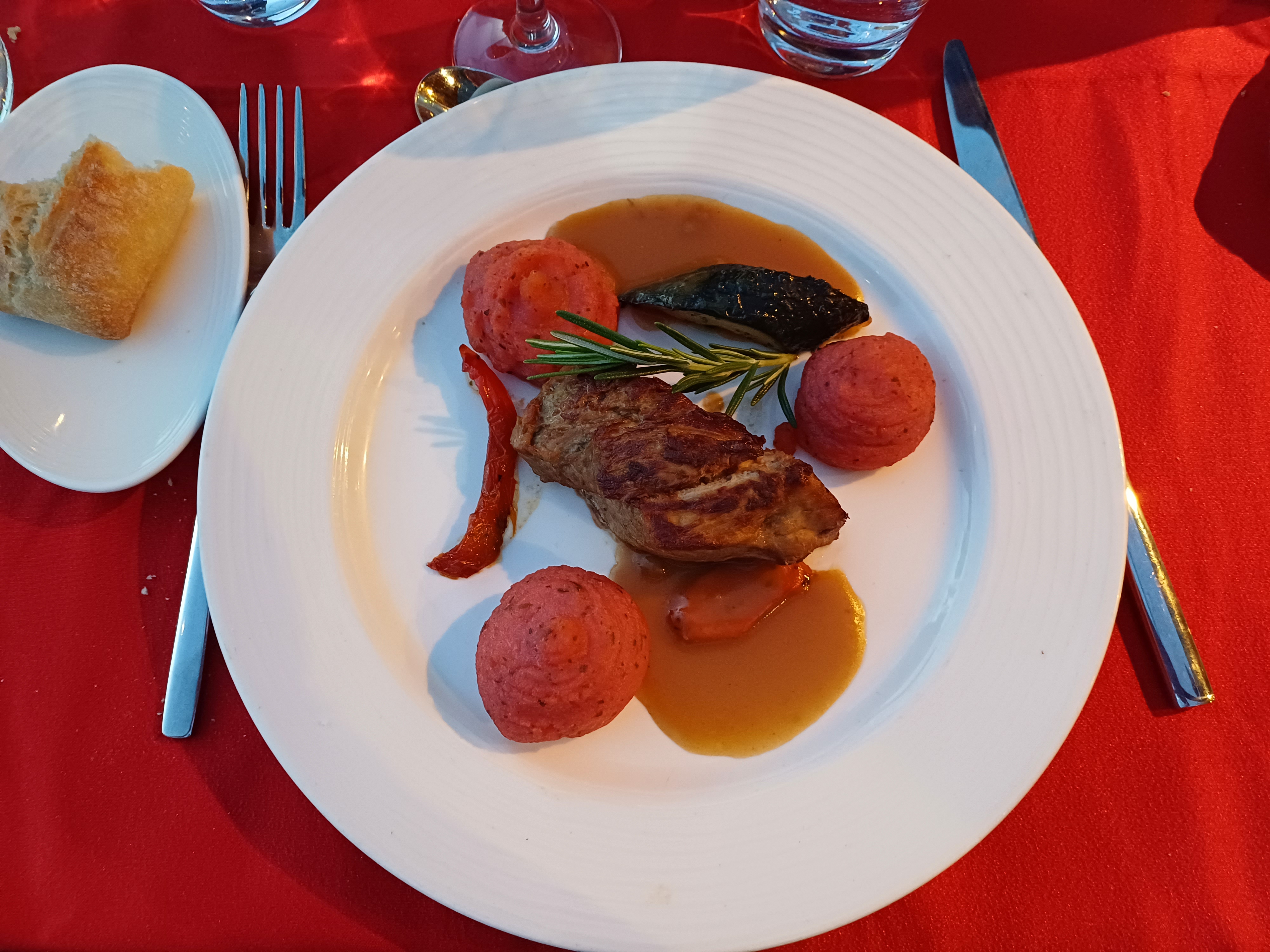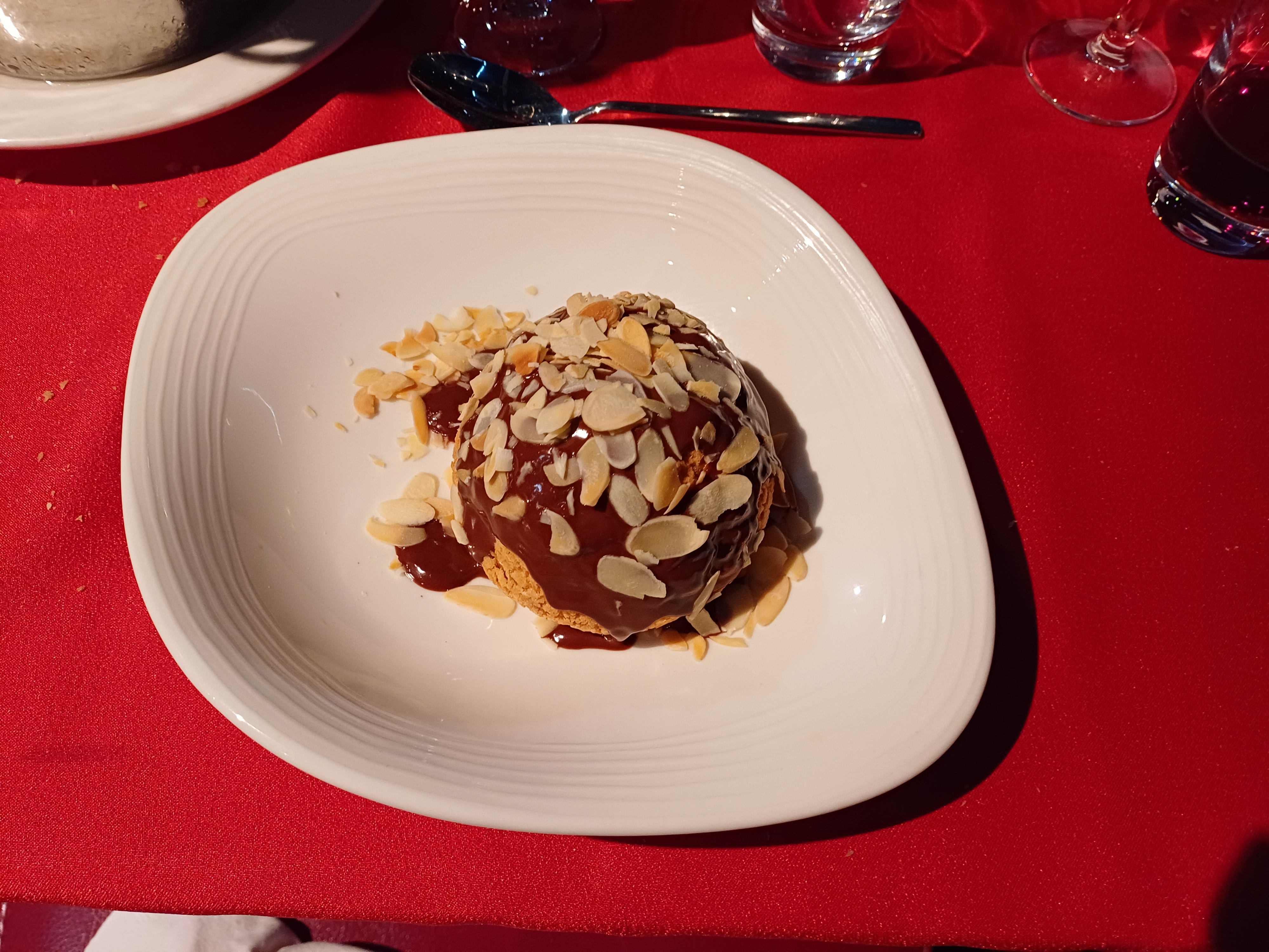 Bonne soirée et belle balade de nuit à faire au moins une fois en amoureux. Dommage que l'on ai pas pu voir le violoniste car à l'autre bout du bateau.. Mon assiette était froide, j'ai été reservi très rapidement.. simple et bon. Boisson bien suffisante. Personnel souriant et serviable.