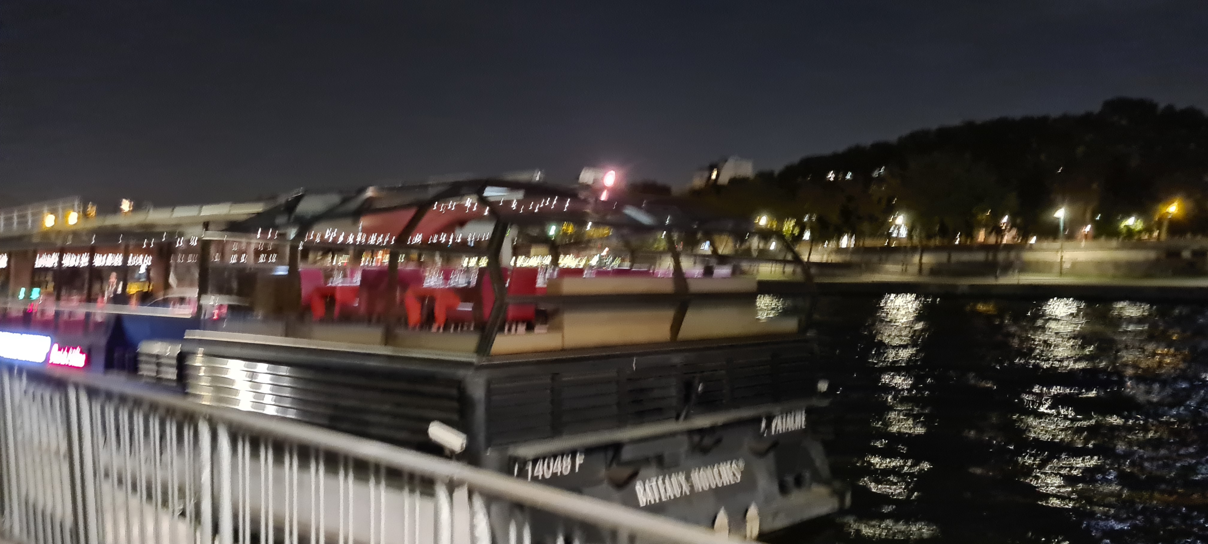 nous avions réservé un dîner promenade pour samedi soir. Il y avait pas mal de monde, nous étions répartis sur 3 bateaux. Nous avons malheureusement eu la malchance de nous retrouvés côté quai sur le zouave, mais en bout! du coup nous avons eu la rambarde du bord du pont pendant toute la ballade, ce qui gâche la vue, surtout que j'avais l'intention de faire des photos....=> obligé de me contorsionner.... sinon le service et le repas sont corrects, avec un vin pétillant d'accueil, et une bouteille de vin pour 2 pendant le repas.