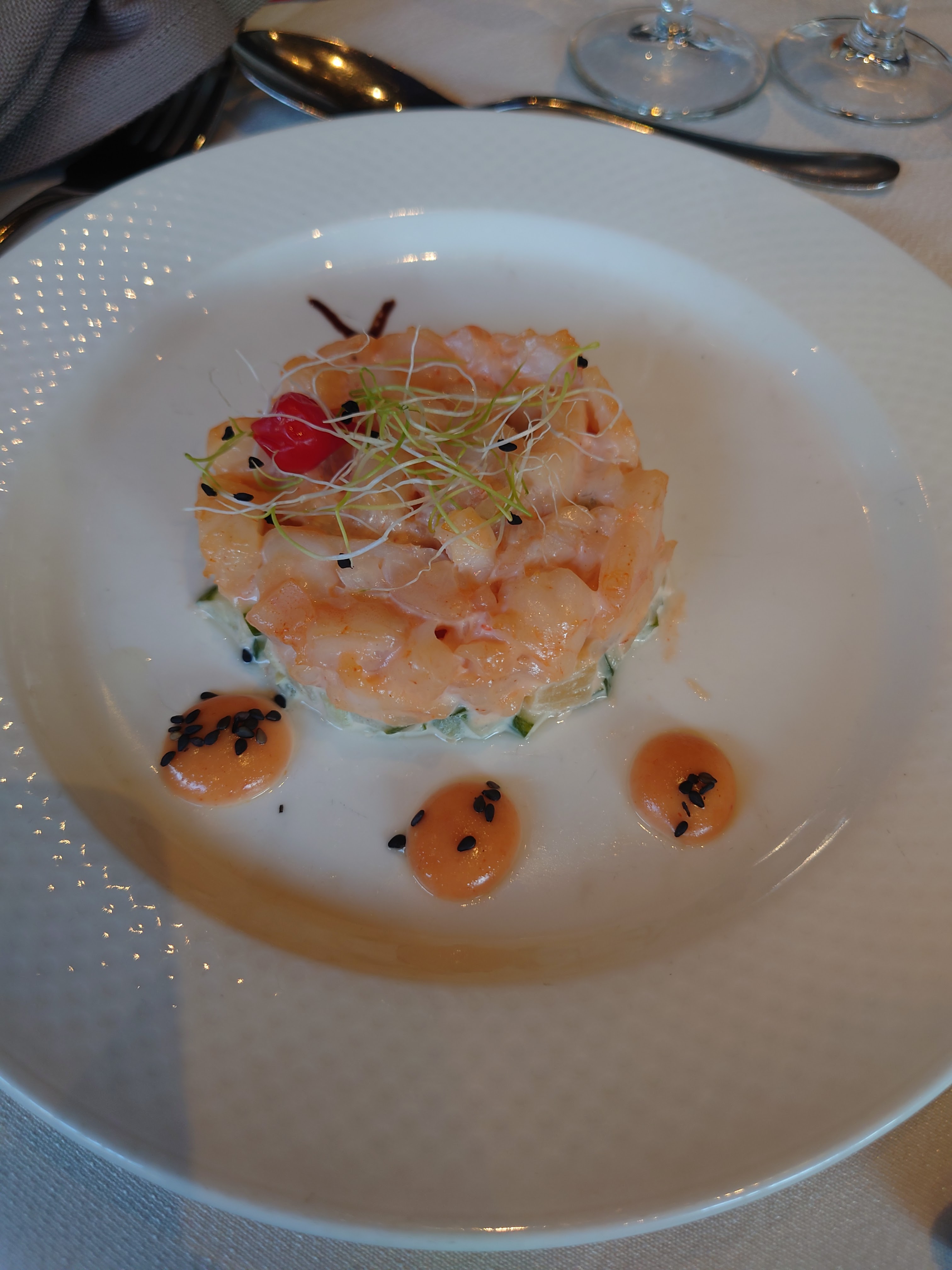 Repas menu prestige très bon. Pour nous cher pour la qualité des produits. Le service était bon mais quand même étonnant. Lors de l'apéritif on nous a pas proposé autre chose que du champagne alors que sur le menu il y avait d'autre chose sans alcool, pareil pour après le dessert avec le café imposé alors qu'il y avait du thé. Étonnant et dommage vu le prix du menu.