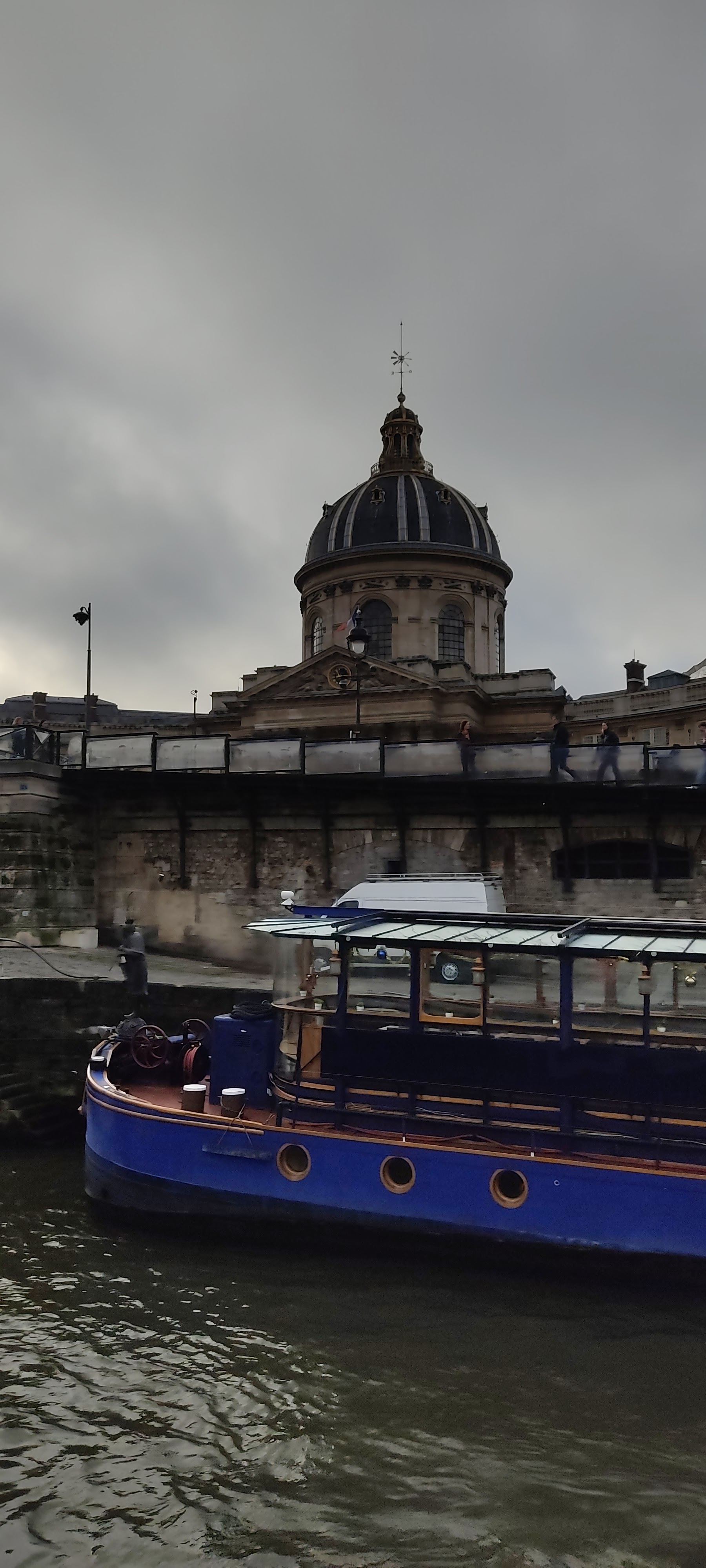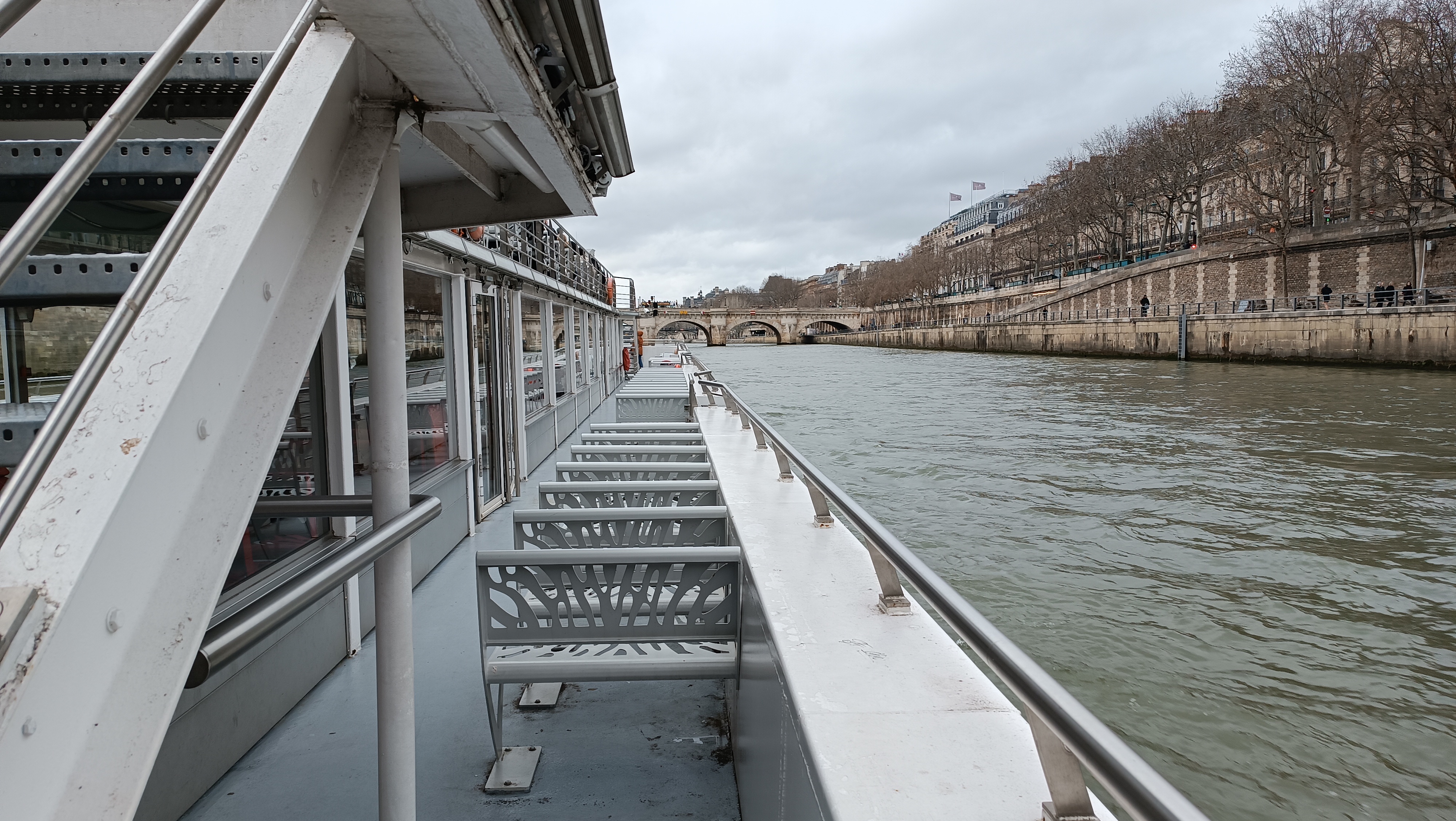 Petite balade en bâteau pour observer Paris depuis la Seine. La petite balade est reposante. Nous voulions faire cette promenade pour montrer aux enfants quelques bâtiments fameux de la capitale. Fort heureusement, le temps n'étant pas au rendez-vous et le froid s'étant installé, nous avons profité de l'espace intérieur du bâteau relativement bien chauffé. Nous avons pu profiter de la balade au chaud et au sec en pouvant sortir sur le toit du bâteau de temps à autres pour photographier Paris. A faire au moins une fois. La visite se passe le long de la Seine de la tour Eiffel jusqu'au Pont d'Austerlitz.