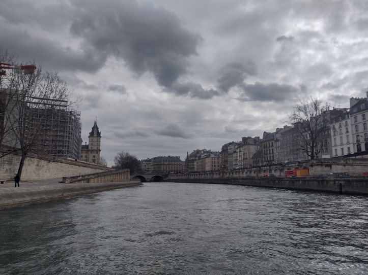 Très belle balade sous un ciel menaçant mais nous n'avons pu voir ni Notre-Dame ni la conciergerie... Le bateau a hélas fait demi-tour bien avant, sans même nous en informer. Une histoire de pont et de marée peut-être ?