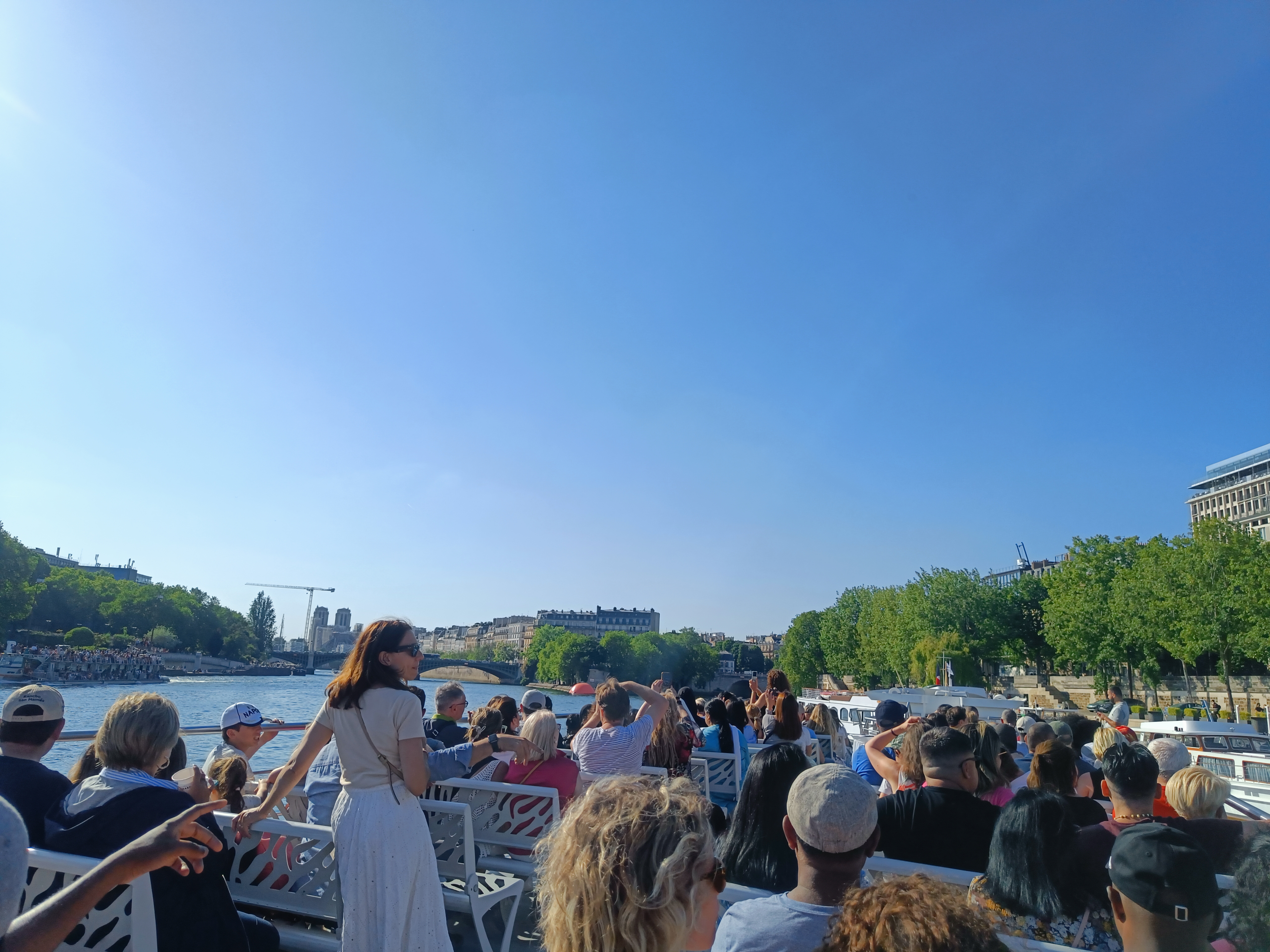 Beaucoup de monde, les places en haut du bateau sont excellentes pour contempler Paris mais dommage que l'on entende strictement rien de la visite guidée...