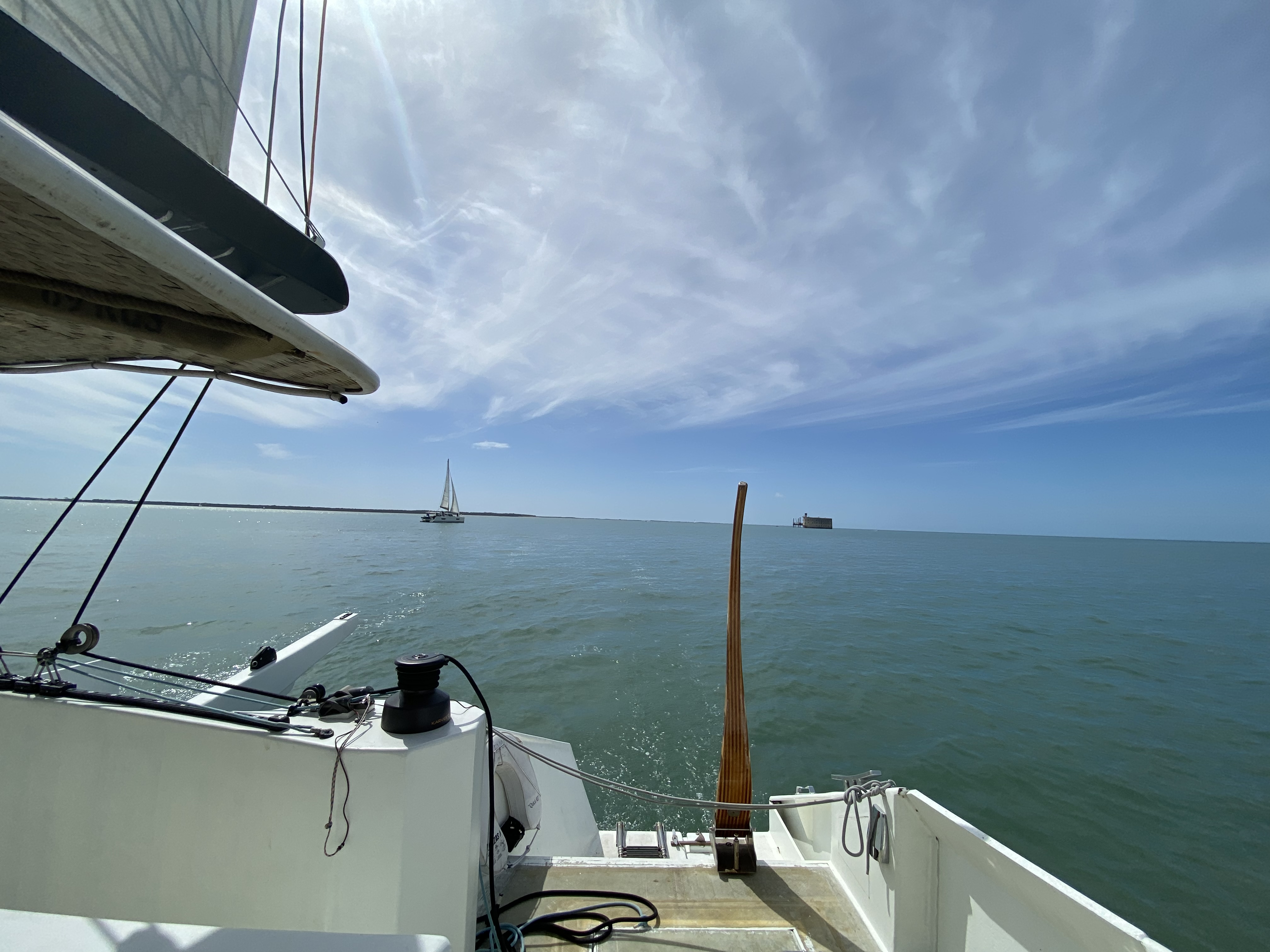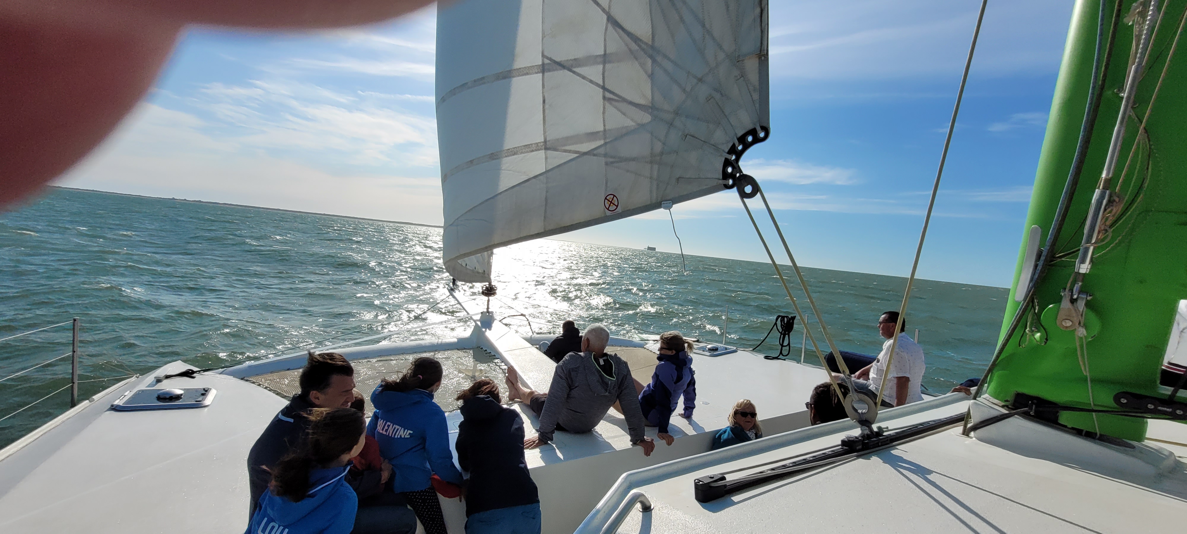 Merci a Maude et Harry. Pour l'accueil et les explications. Une balade de pure bonheur rythmé au gré du vent. Et un catamaran très bien fait. Très beau panoramique.