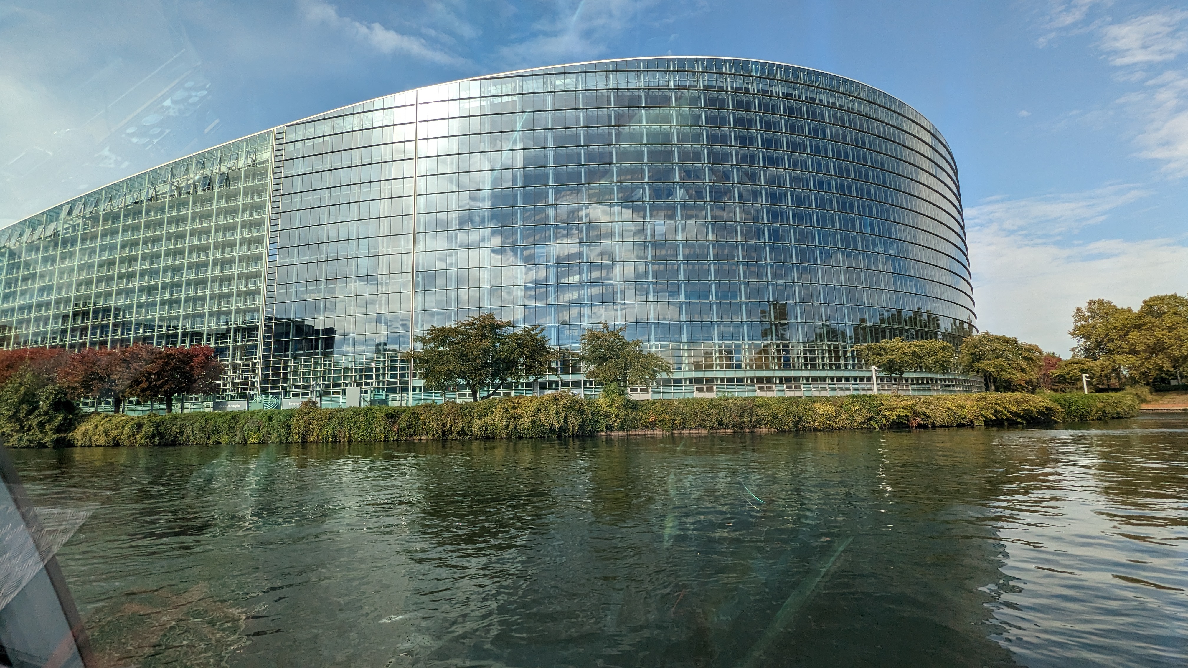 Belle promenade. Découverte de la partie allemande Neustadt. Vue extérieure du parlement européen.