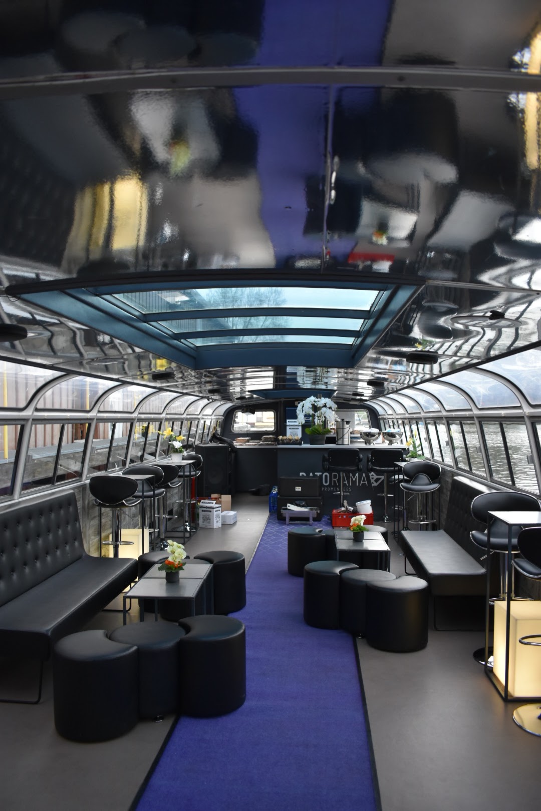 Batorama bateau version de nuit ou de jours ,pour des buffets jusqu'à 70 personnes,nouveau concept sympa.