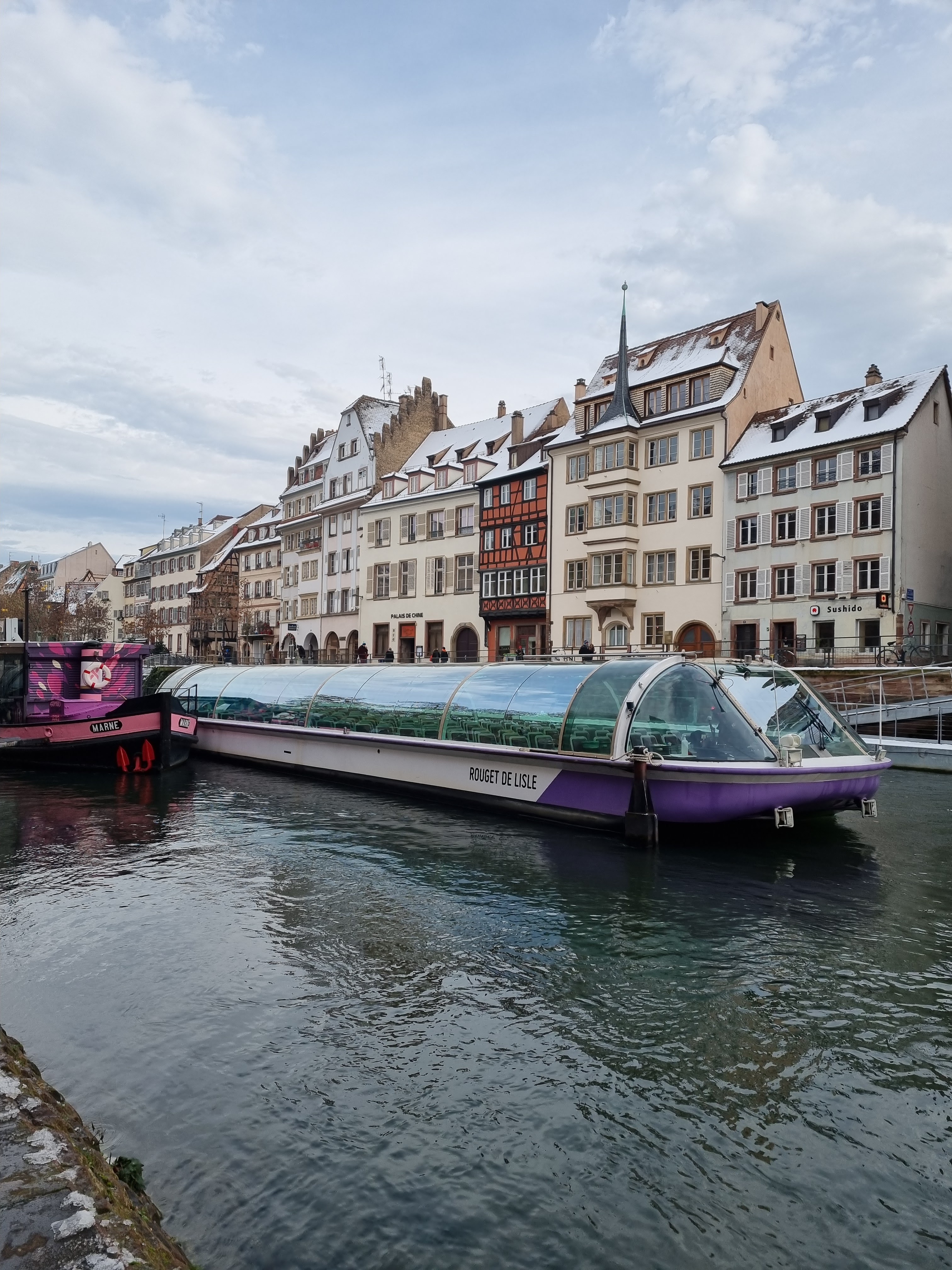 Semblables aux bateaux mouches de Paris, mais en moins grandiose. La ville est belle à voir et les façades des maisons alsaciennes toujours aussi belles.