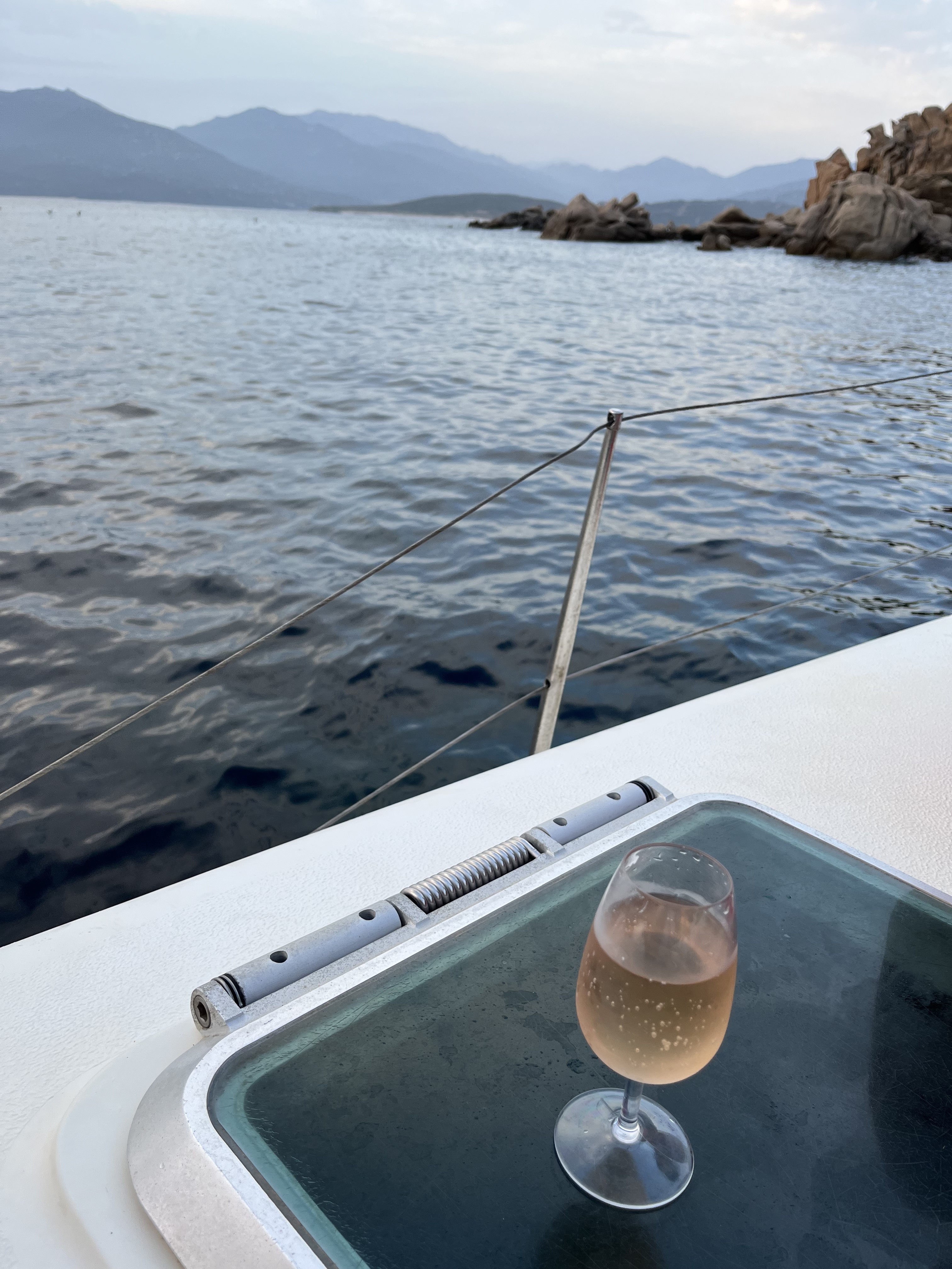 Très belle sortie pour voir le coucher du soleil dans le Valinco Merci à Lulu pour l’ambiance et sa bonne maîtrise de la voile et de son catamaran Une très belle sortie avec une baignade bien sympa Le plus de cette sortie c’est que l’on est pas pressé ! Lulu saura vous mettre à l’aise et est extrêmement sympathique. Des masques sont prévus si besoin Vin rose de Corse . Soft drink disponible aussi On ne peut que conseiller cette sortie