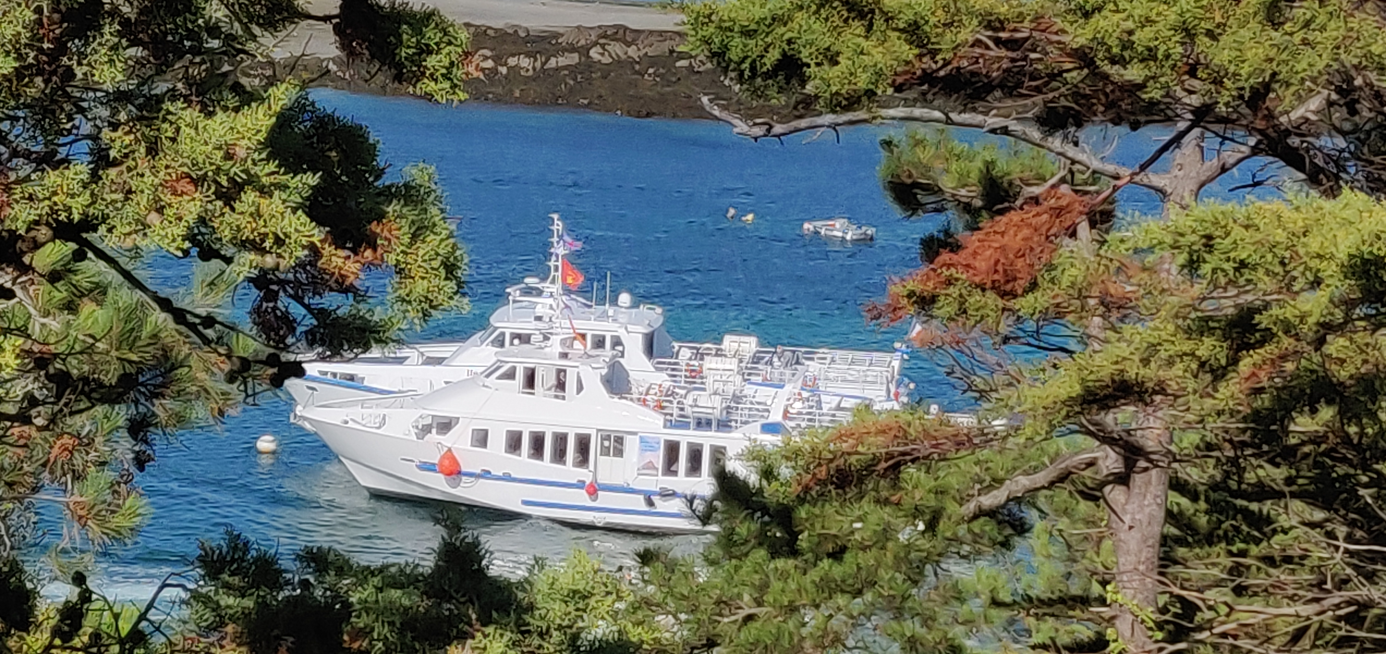 Très belle île belle journée de balade et de bains de mer et de soleil... Les vedettes très très bien même de l interieur la vue est belle car grandes vitres. Personnel prévenant rien à redire+++ Nous faisons cette traversée sur le jolie France chaque année depuis plus de 40 ans, vraiment très bien....