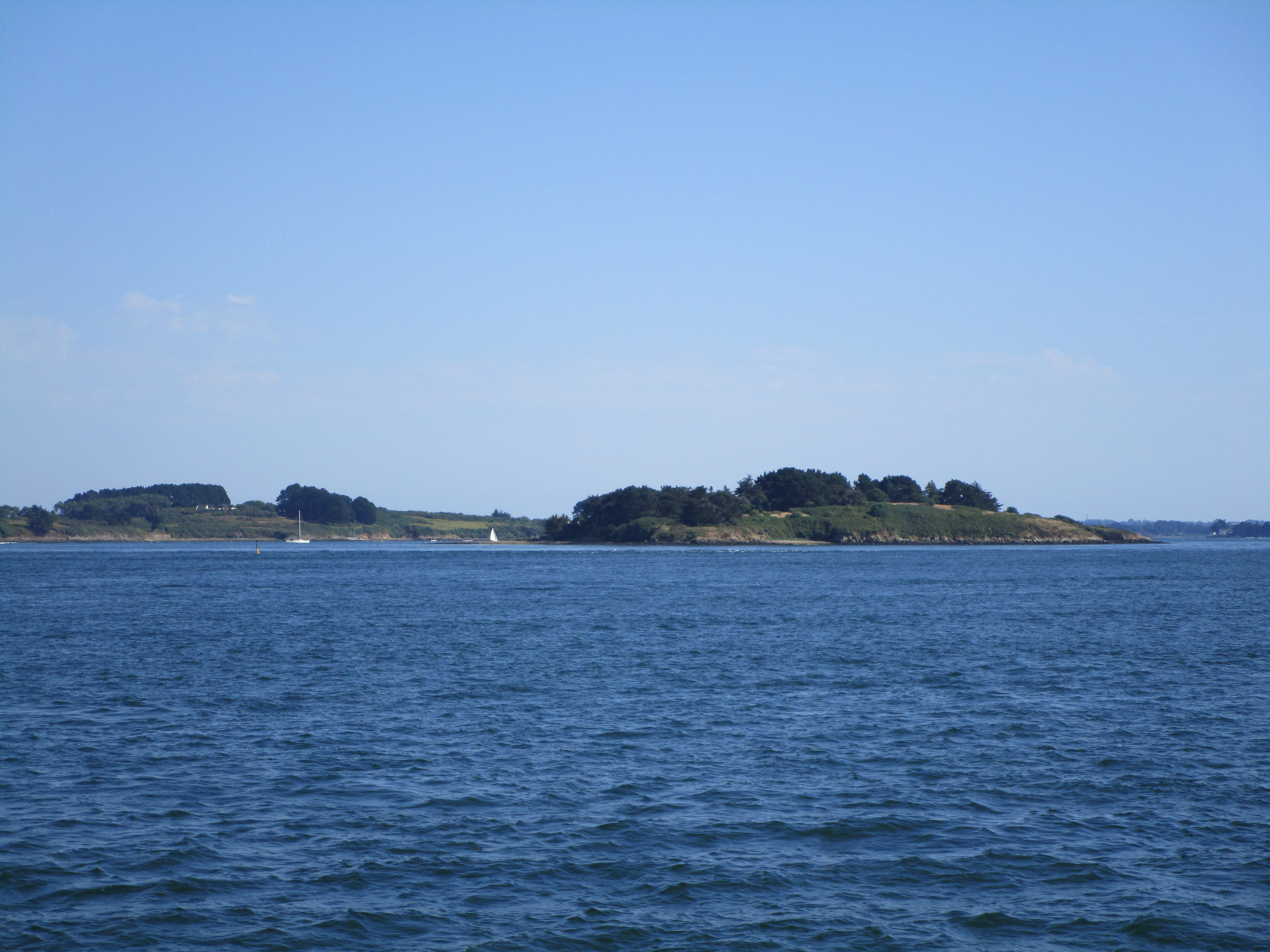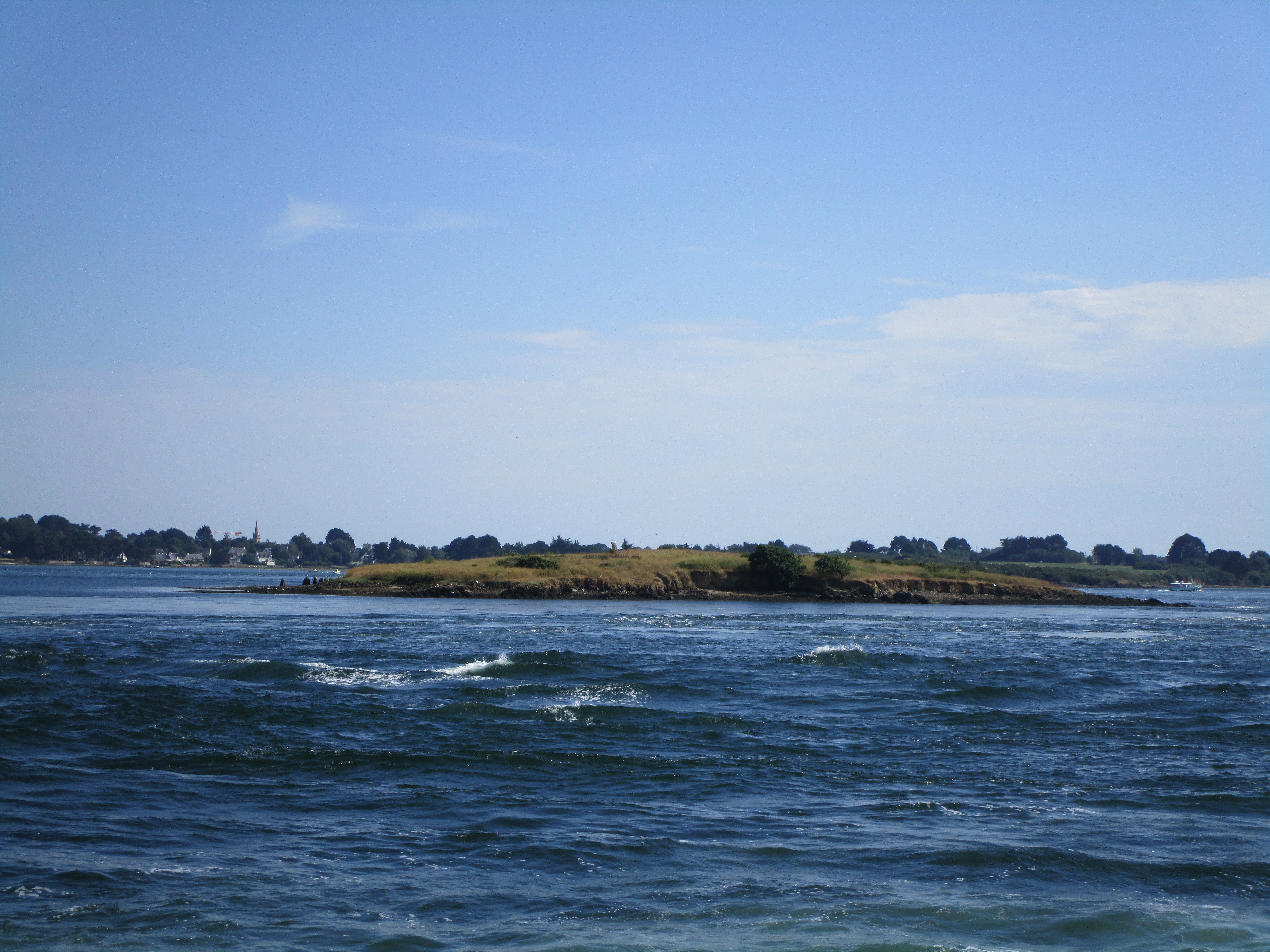 On a pris le tour de l'île aux Moines, sans escale. La balade était très agréable. Bon par contre, ça se roulait des pelles dans la cabine de pilotage. J'ose espérer que ce n'était pas le personnel car sinon pas très pro....
